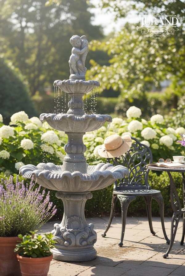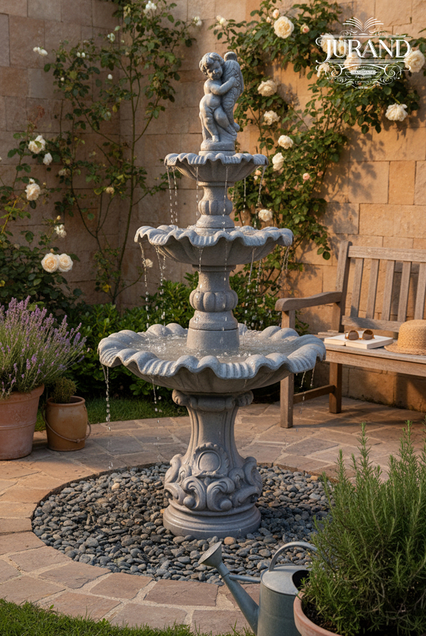 Klasyczna o trzy piętrowej budowie, fontanna, tworzy idealny klimat do wypoczynku mając w sąsiedztwie ławy z których można się wpatrywać w bystro płynącą wodę i nasłuchiwać jej szumu. Fontanna o prostej formie i czteropoziomowej budowie. Przystosowana do pracy na suchym podłożu jak i oczku wodnym. Zastosowanie wewnątrz/zewnątrz.
