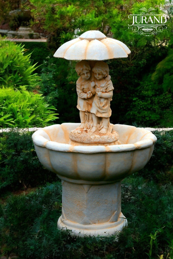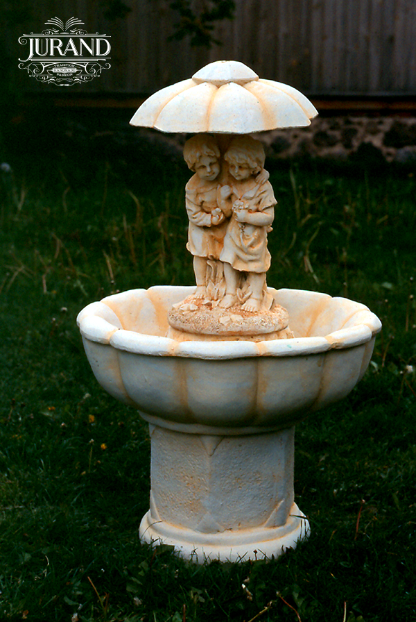 Mała fontanna ogrodowa doskonale sprawdzi się w każdym ogrodzie. Prezentowany model charakteryzuje się niewielkimi rozmiarami, co pozwala na dogodne usytuowanie w ogrodzie czy patio. Ciekawa forma łącząca figurę dwójki dzieci pod parasolem i misę będzie stanowić urozmaicenie każdego zielonego zakątka – umieszczenie źródła wypływu wody w górnej części parasola pozwala uzyskać ciekawy efekt wizualny i duży szum. Dzięki możliwości wyboru odpowiadającego stylu i koloru fontanna może idealnie wpisać się w panujący w ogrodzie klimat. Nasze fontanny wyróżniają się na tle konkurencji wysoką jakością wykonania, a także dbałością o każdy szczegół. Na uwagę zasługuje również fakt, iż montaż fontanny ogrodowej jest bardzo prosty i intuicyjny, a zastosowany materiał nie wymaga konserwacji i jest odporny na działanie czynników atmosferycznych. W swojej ofercie posiadamy także inne modele małych fontann ogrodowych. Zapraszamy do zapoznania się ze wszystkimi propozycjami.
