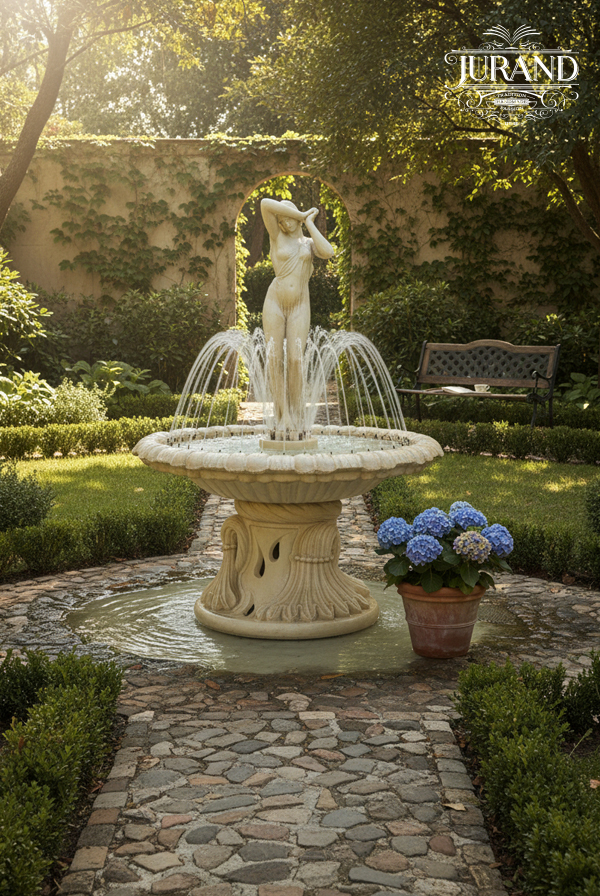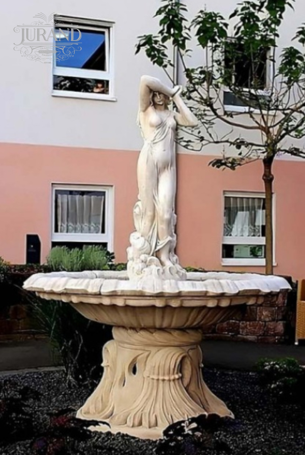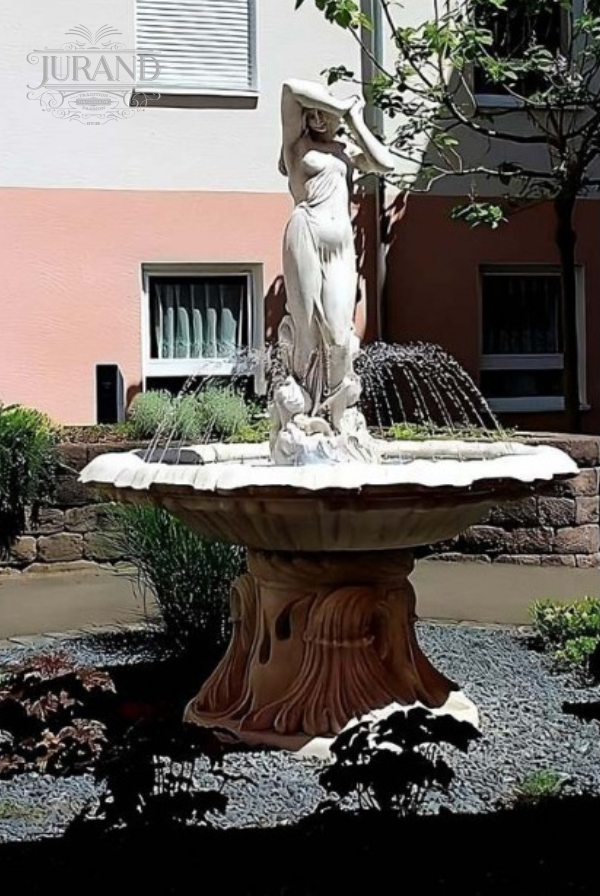 Pokaźna fontanna zewnętrzna/wewnętrzna z masywna nogą oraz misą, której delikatności dodaje kobieta kąpiąca się w strumieniach wody z 24 dysz fontannowych. Fontanna idealnie prezentuje się w dyskretnych zakątkach ogrodów mniejszych i średnich obiektów. W komplecie występuje z ringiem z 24 dyszami fontannowymi co daje piękny efekt tryskającej wody i nastrojowy szum. Możliwe zastosowanie na suchej powierzchni jak i w oczku wodnym.