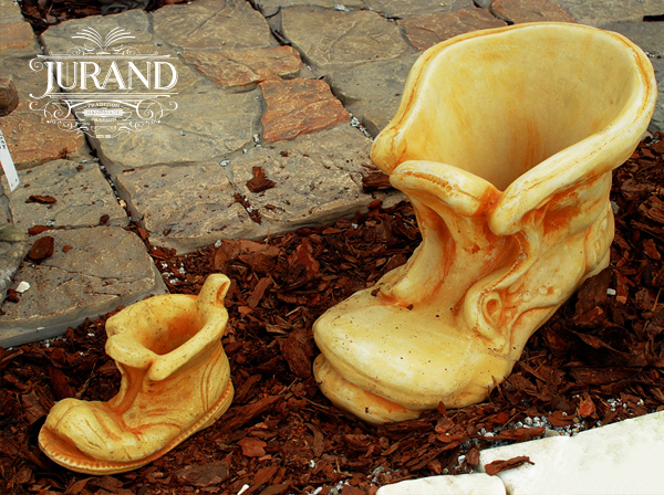 Podniszczony mały bucik będzie radością dla niezapominajek.