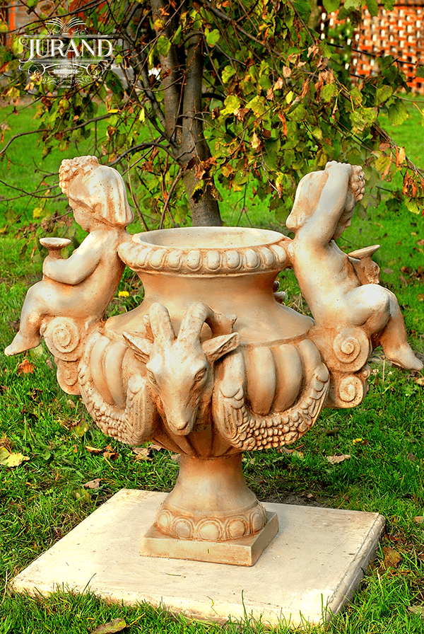 Waza o zwartej formie, której prawdziwą dekoracją są rzeźby amorków jako uchwyty wazy. Sceny płaskorzeźby głowy kozła i wiankiem kwiatów stanowi już samo w sobie interesujący obiekt. Ich wzór został odnaleziony w rzymskim Koloseum.